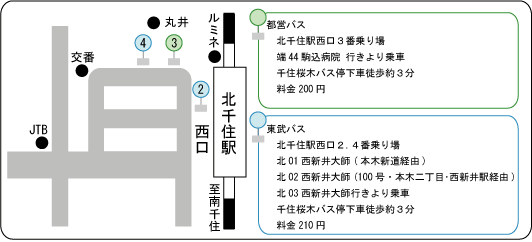 帝京科学大学千住キャンパス 〒120-0045 東京都足立区千住桜木2-2-1 JR常磐線・東武伊勢崎線・東京メトロ千代田線 つくばエクスプレス 北千住駅下車 北千住からバスの場合: 西口から東武・都営バス各線より乗車 「千住桜木」バス停下車 徒歩約3分 北千住から徒歩の場合: 西口より直進の後、千住竜田町信号を右折後、千住桜木バス停を左折徒歩約20分